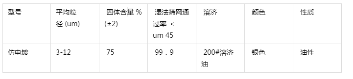 仿電鍍銀漿按粒徑的粗細分,有3、4、5、6、7、8、9、10、12 um,本產品經特殊工藝制備,具有亮光、明亮度,窄的粒徑分布與均勻的表面分布效果,銀元形,很好的可分散性和交好的穩定性。